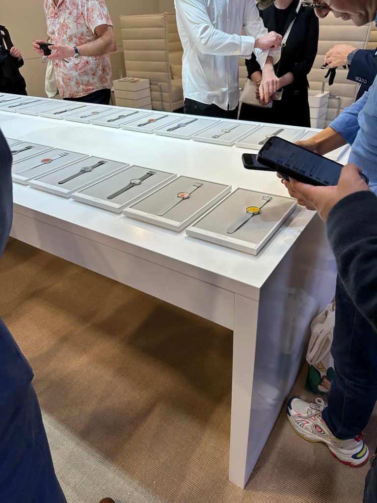 First stop, Nomos! Right near the entrance. 31 colours for 31 days – it was great to see some of these in the flesh – Tangente 38 date, the special edition from NOMOS Glashütte (nomos-glashuette.com)